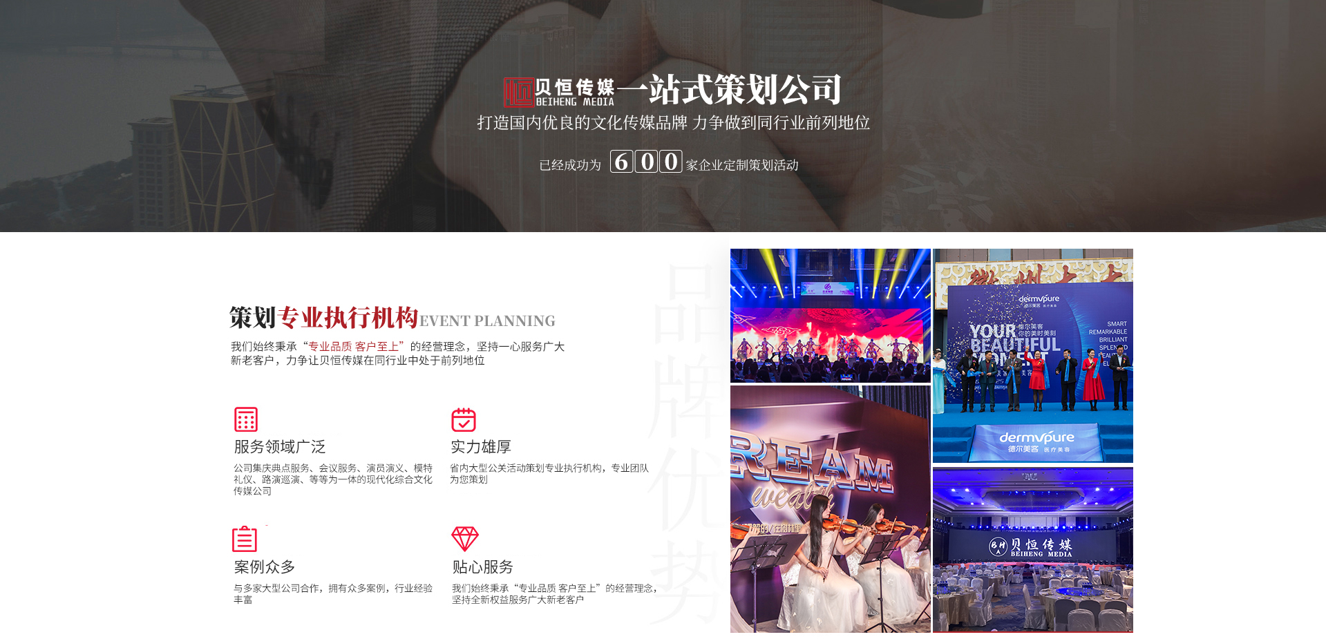 合 肥 貝 恒 文 化 傳 媒 專注·專業(yè)·專心·效率   合肥貝恒文化傳媒有限公司2017年成立于安徽·合肥,是省內(nèi)大型公關(guān)活動(dòng)策劃專業(yè)執(zhí)行機(jī)構(gòu),公司集慶典服務(wù)、會(huì)議服務(wù)、演員演藝、模特禮儀、路演巡演、展會(huì)特裝、廣告制作、設(shè)備租賃、舞美策劃、企業(yè)形象宣傳等為一體的現(xiàn)代化綜合文化傳媒公司,我們始終秉承“專業(yè)品質(zhì)客戶至上”的經(jīng)營(yíng)理念,堅(jiān)持全...